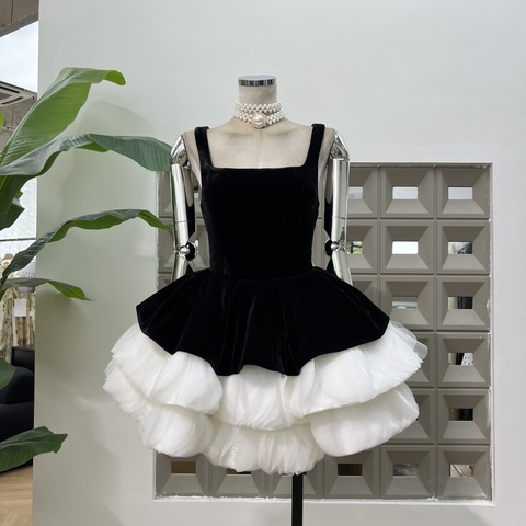 Hoge Kwaliteit Hemdje Fluwelen Jurk Dames Verjaardagsfeest Jurk Contrasterende Kleuren Pluizige A-Lijn Vest Jurk