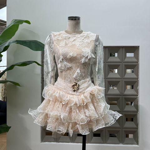 Sexy En Elegant Hemdje Korte Rok 2025 Herfst Nieuwe Retro Kanten Hemdje Jurk Dameskleding