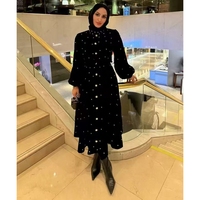 Lichte Luxe Herfst/Winter Nieuwe Vintage Fluwelen Hete Diamant Staande Kraag Bubble Mouw Single Breasted Jurk