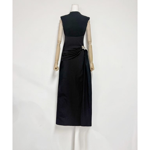 Herfst 2025 Nieuwe Ronde Hals Mouwloos Geplooid Ontwerp Elegante Lange Jurk Voor Vrouwen